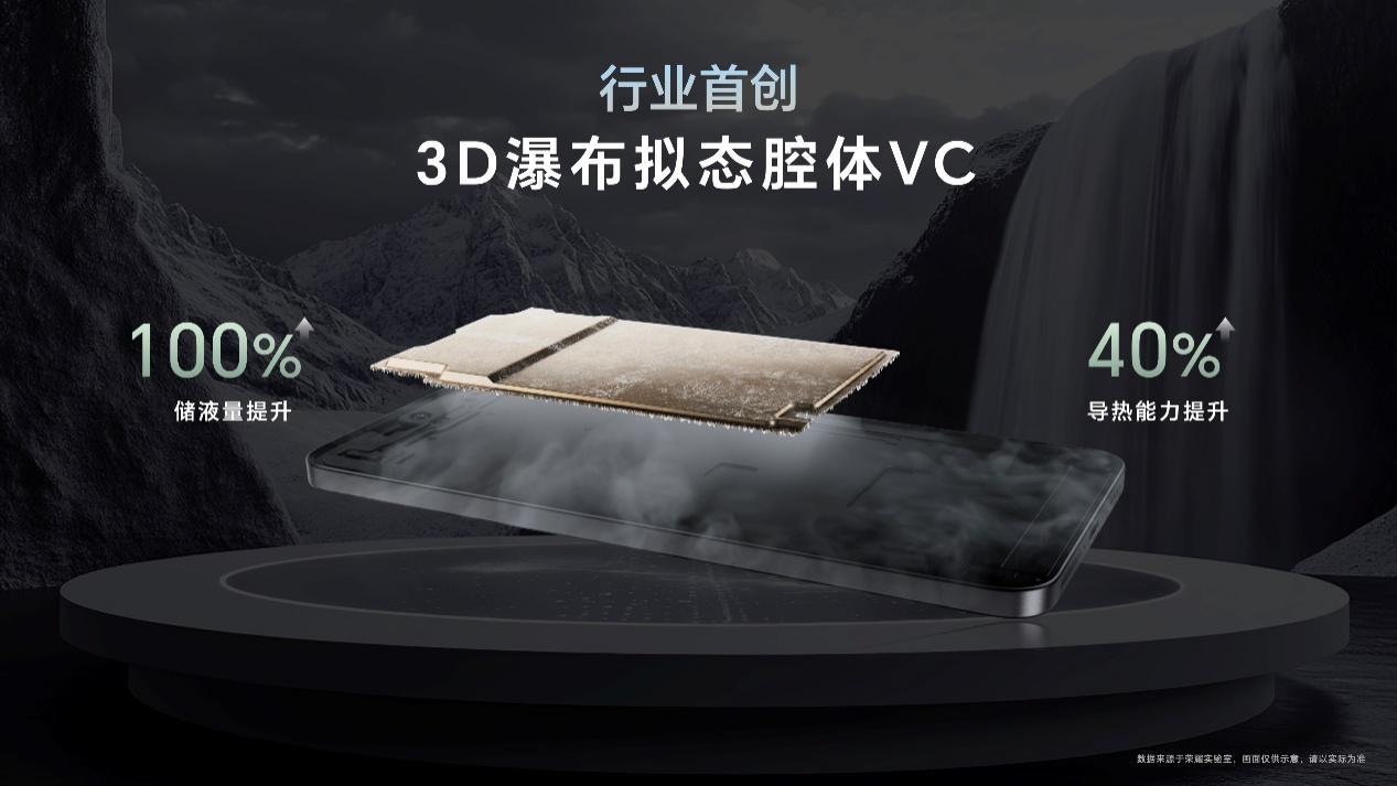 此外,荣耀GT搭载第三代骁龙8旗舰芯,配合LPDDR5X内存和UFS 4.0闪存,组成了性能铁三角,更通过革新性的散热设计进一步提升用户体验。荣耀GT搭载全新的3D自然态循环散热系统,采用业界首创的3D瀑布拟态腔体VC与双干流毛细网设计,使VC单体性能较上一代提升了10%,实现了行业领先的散热效果。荣耀GT还引入了航天级导热凝胶和2K高性能石墨,进一步增强了散热效果。